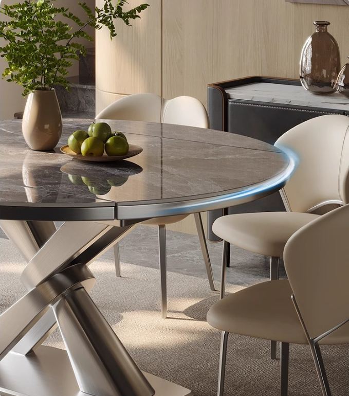 Trang bị khả năng mở rộng/thu gọn mặt bàn 1 cách linh hoạt. Nhanh chóng từ một chiếc bàn tròn thành bàn bầu dục và ngược lại, đáp ứng cho nhiều môi trường, hoàn cảnh sử dụng khác nhau.
