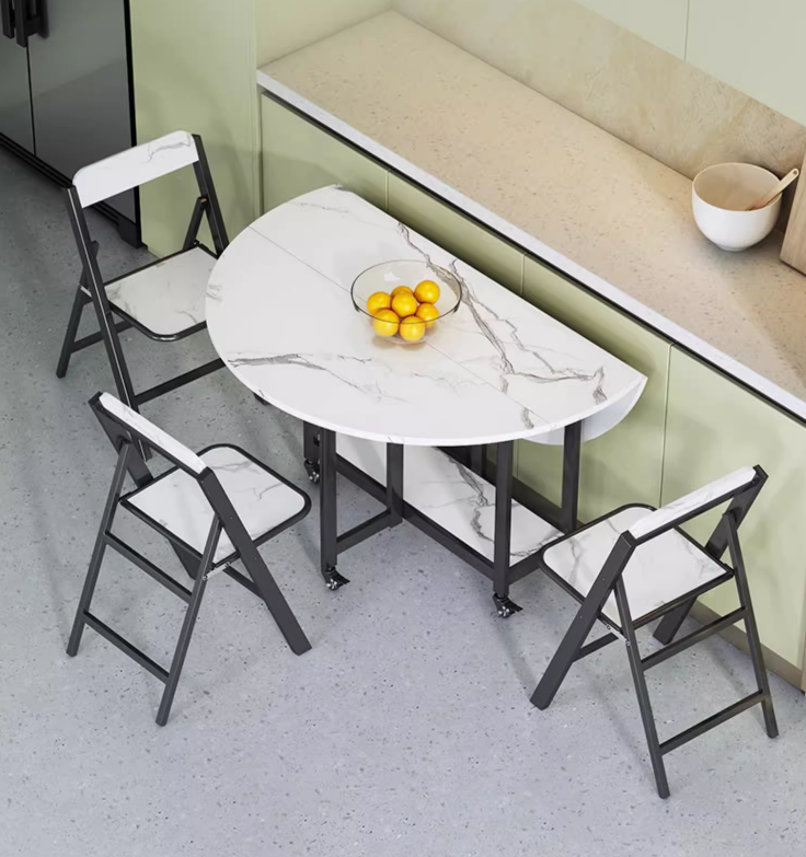 Khi bàn gập lại còn 1 nửa, diện tích mặt bàn nhỏ, thích hợp với những buổi họp mặt/tụ tập ít người như thưởng thức trà chiều một cách vui vẻ cùng vài người bạn chẳng hạn. Giúp không gian nhà bạn trở nên thư thái hơn.