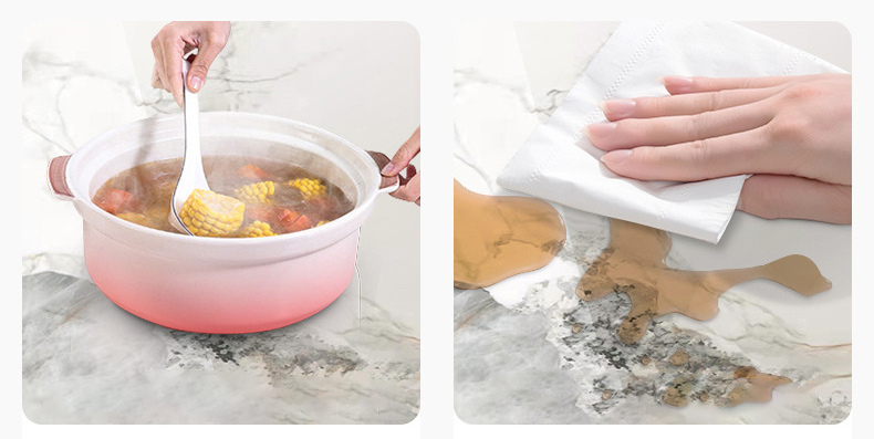 Mặt bàn bằng đá ceramic (đá phiến) nhập khẩu Italy. Kết cấu mịn màng, vân đá tự nhiên & sắc nét, màu sắc bóng mượt cho cảm giác đặc biệt quyến rũ. Đá có độ cứng cao, chịu được nhiệt độ cao, chống trầy xước, chống thấm nước, không phai màu, không độc hại, dễ vệ sinh khi bị bám bẩn.