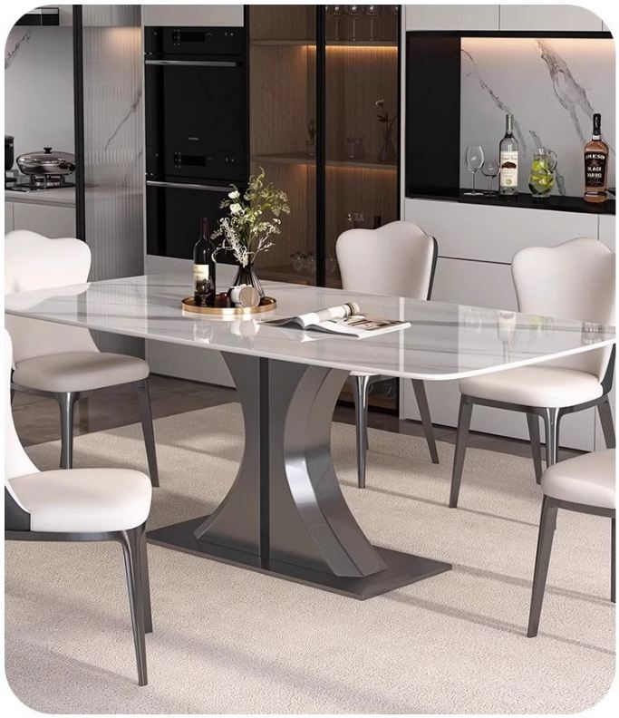Mặt bàn hình chữ nhật, vân đá nhẹ nhàng – tinh tế, khung chân nghệ thuật có tạo hình độc đáo , đem đến một tổng thể cực chất, thu hút mọi ánh nhìn.