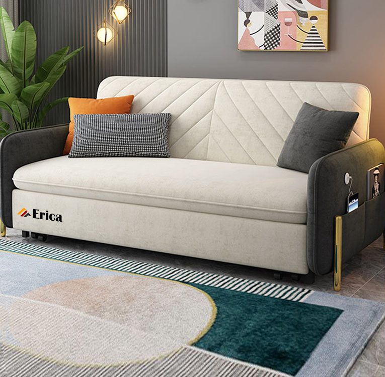 Để sản phẩm ghế giường màu trắng có thêm điểm nhấn thì gia chủ nên kết hợp thêm vài chiếc gối tựa xinh xắn hoặc một số đồ vật trang trí khác như bàn trà, kệ tivi, rèm cửa,…