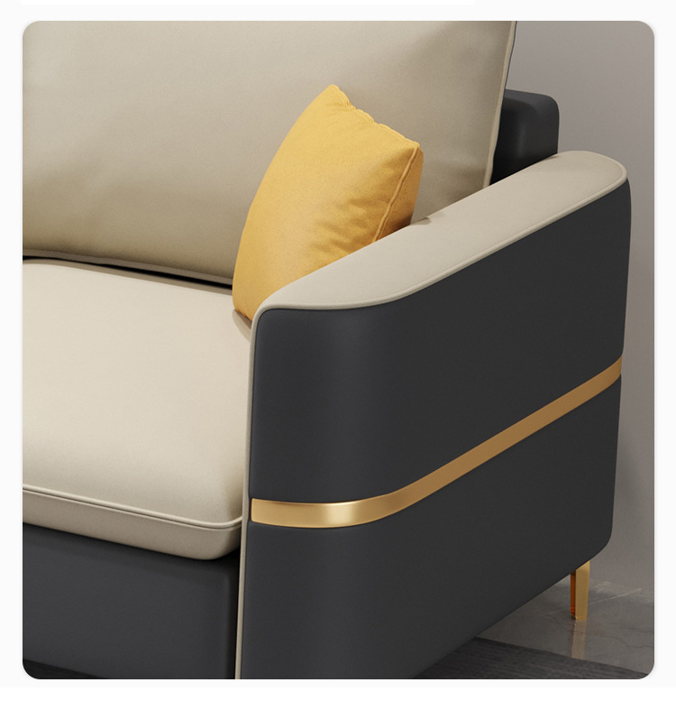 ERICA – NS05 là sự phối hợp tinh tế giữa hai gam màu đối lập, mang lại hiệu ứng thị giác độc đáo và cuốn hút. Các đường chạy ngang sofa được mạ vàng tỉ mỉ, tạo nên dấu ấn sang trọng và góp phần nâng tầm giá trị thẩm mỹ cho không gian sống.