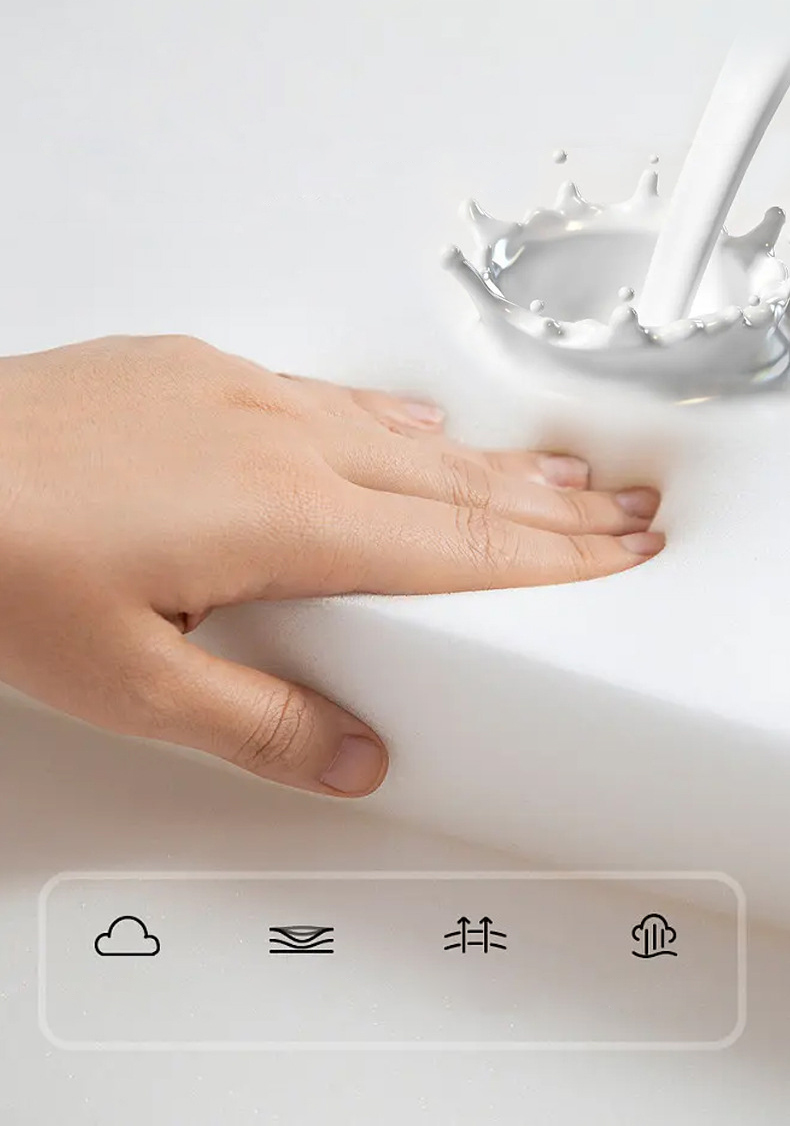 Phần đệm ngồi và tựa lưng của sofa là sự kết hợp giữa mủ cao su tự nhiên và mút bọt biển, đem lại độ êm và đàn hồi cao. Thiết kế giúp hạn chế tình trạng xẹp lún, thoáng khí, bền bỉ theo thời gian. Tựa lưng được nhồi bông đầy đặn, mềm mại, mang đến cảm giác dễ chịu và thân thiện với môi trường.