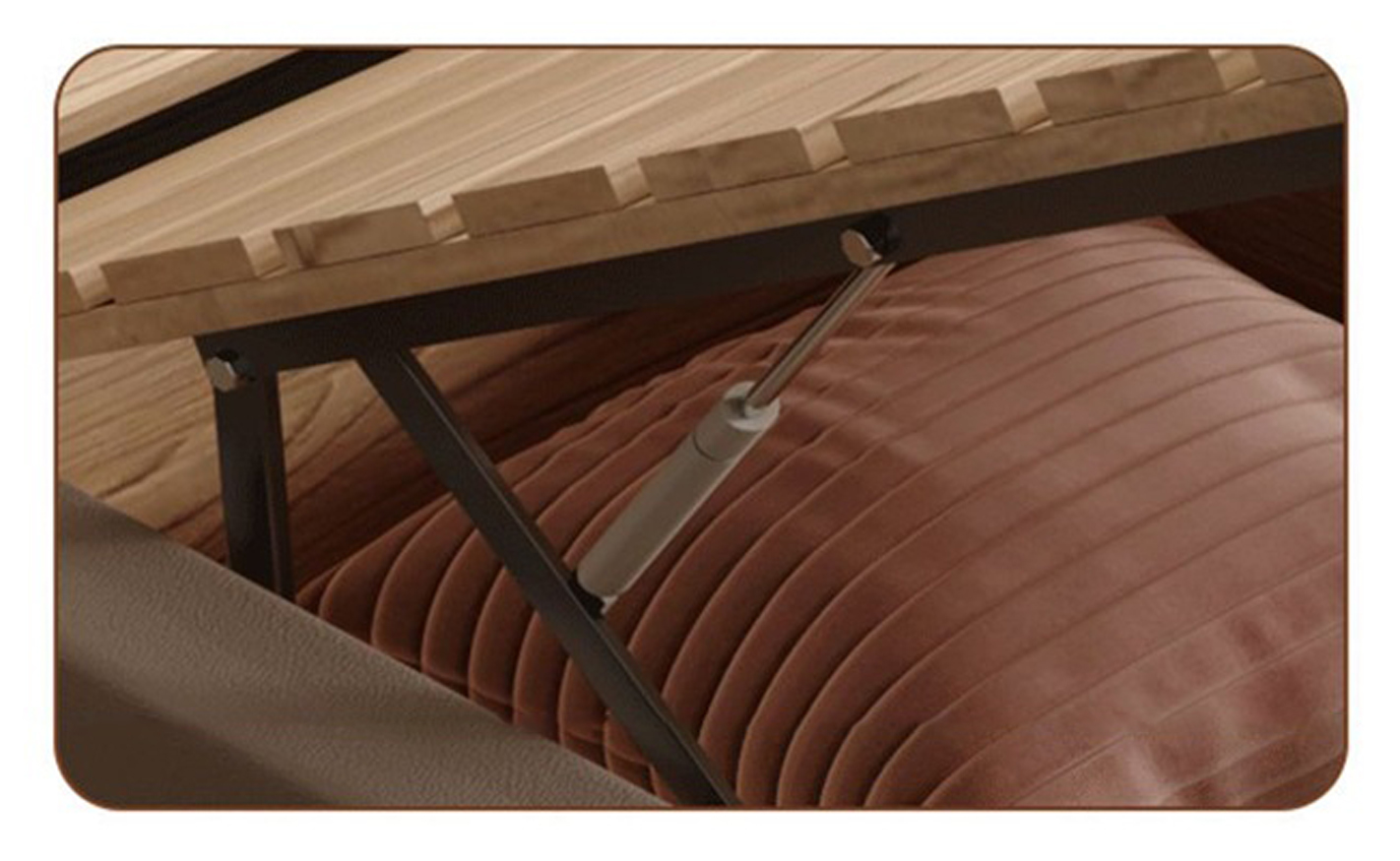 Ngoài lựa chọn khung nan gỗ chắc khỏe, giường còn có phiên bản nâng hạ bằng thủy lực, mang đến không gian chứa đồ rộng rãi, gọn gàng và tiện dụng cho gia đình.