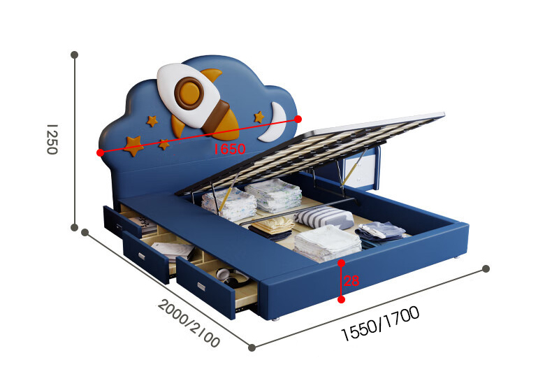 Sản phẩm tích hợp hệ thống ngăn kéo và hộc chứa ẩn bên dưới, cho phép phụ huynh sắp xếp gọn gàng đồ dùng cá nhân, chăn ga hay đồ chơi của bé. Đây là giải pháp thông minh giúp tối ưu không gian sống và giữ phòng ngủ luôn ngăn nắp.