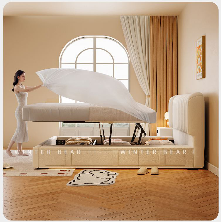 Khoang lưu trữ ẩn dưới nệm có sức chứa lớn, dễ dàng đóng mở để cất giữ chăn ga, gối hoặc đồ dùng ít sử dụng. Giải pháp này vừa tiết kiệm diện tích, vừa giúp phòng ngủ thêm gọn gàng, khoa học.