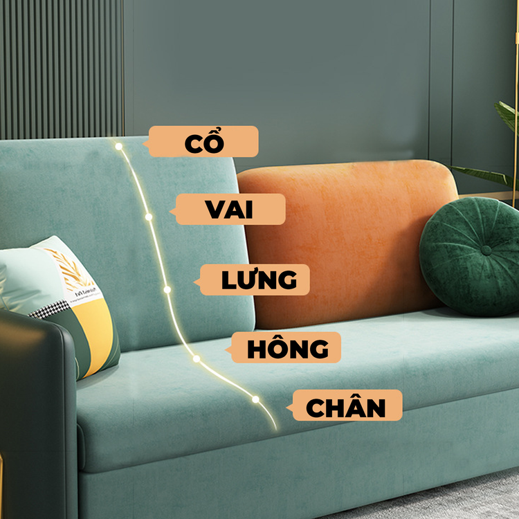 Tựa lưng thiết kế công thái học phù hợp với đường cong cơ thể con người, hỗ trợ đa điểm gồm cổ – vai – lưng – hông – chân, mang đến trải nghiệm nghỉ ngơi thư thái không áp lực, chăm sóc toàn diện – ngồi lâu không mỏi.