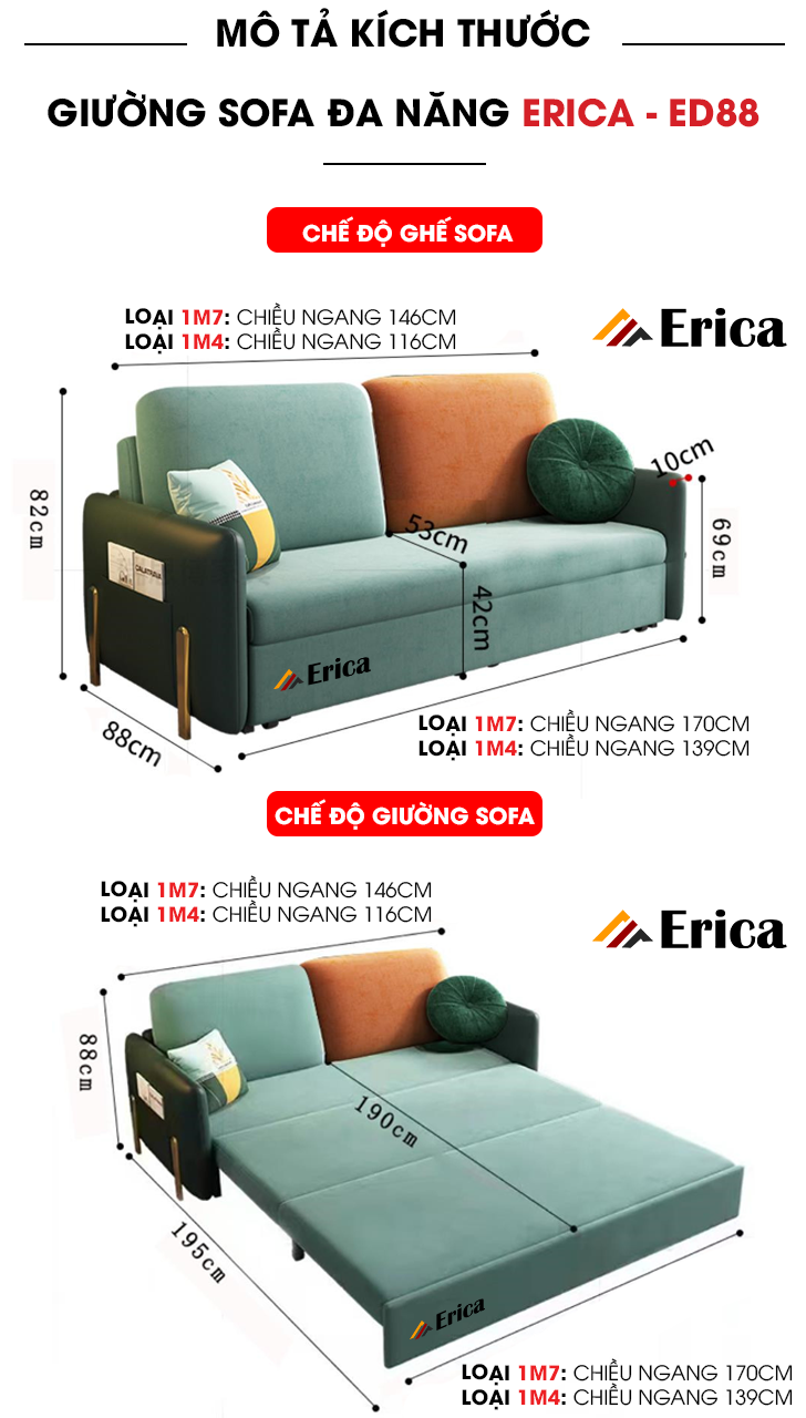 | Tên sản phẩm: Giường sofa cao cấp thông minh ERICA - ED88 | |