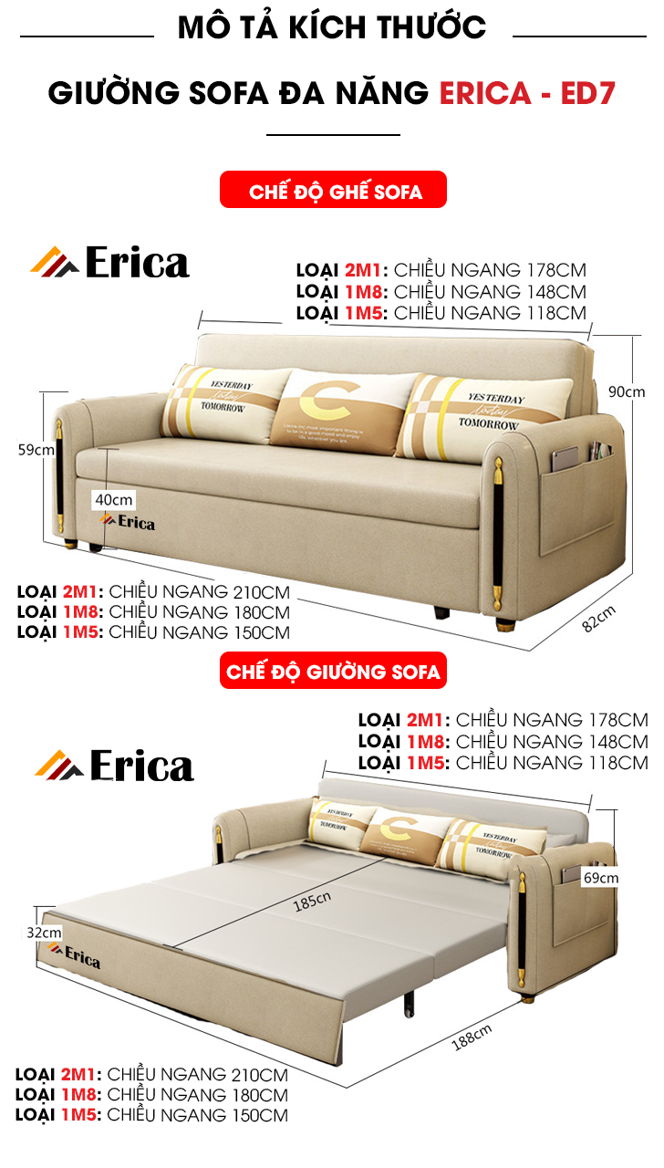 | Tên sản phẩm: Giường sofa đa năng cao cấp ERICA – ED7 | |