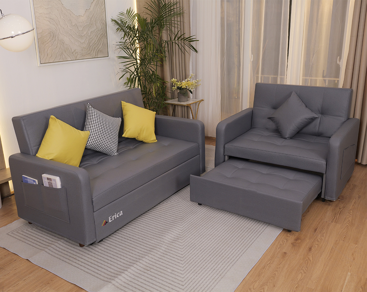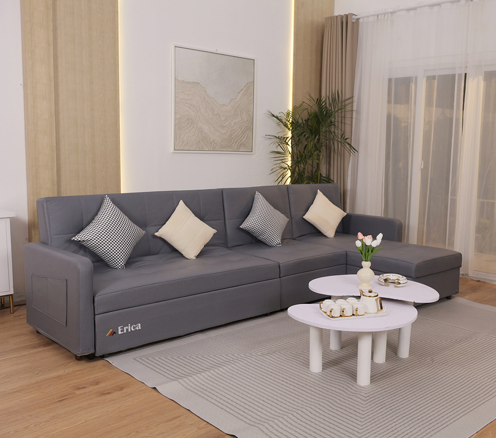 ERICA – LX1 là một sản phẩm nội thất đáng tự hào khi sở hữu khả năng chuyển đổi trạng thái nhanh gọn trong 30 giây. Tức là chỉ cần thao tác kéo nhẹ nhàng, đã có thể nhanh chóng biến salon phòng khách thành giường & giường thành ghế dễ dàng mà không cần tới sự giúp đỡ của bất kỳ ai.