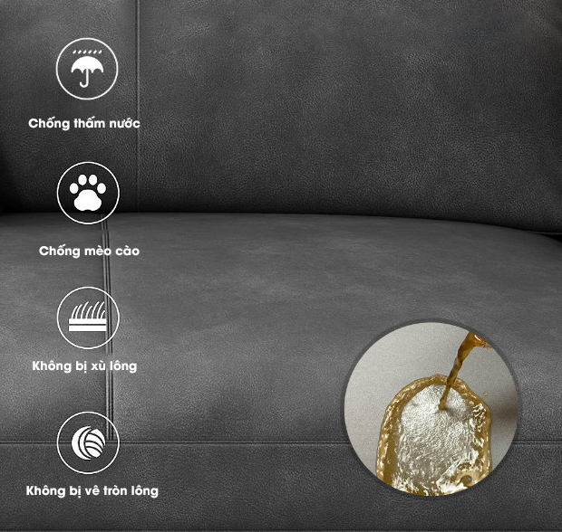 Đệm bọt biển cao cấp, êm ái, đàn hồi tốt, không bị sụt lún/bai nhão, thoáng khí, tạo sự thoải mái dễ chịu mỗi khi nằm, ngồi nghỉ ngơi. Bên ngoài bọc vải công nghệ siêu mềm mại & cực thân thiện với người dùng. Kết cấu vải độc đáo, tựa như chất nỉ giả da, chống thấm nước & chống trầy xước tốt, đặc biệt là không bị xù lông/vê tròn lông bề mặt khi sử dụng lâu.