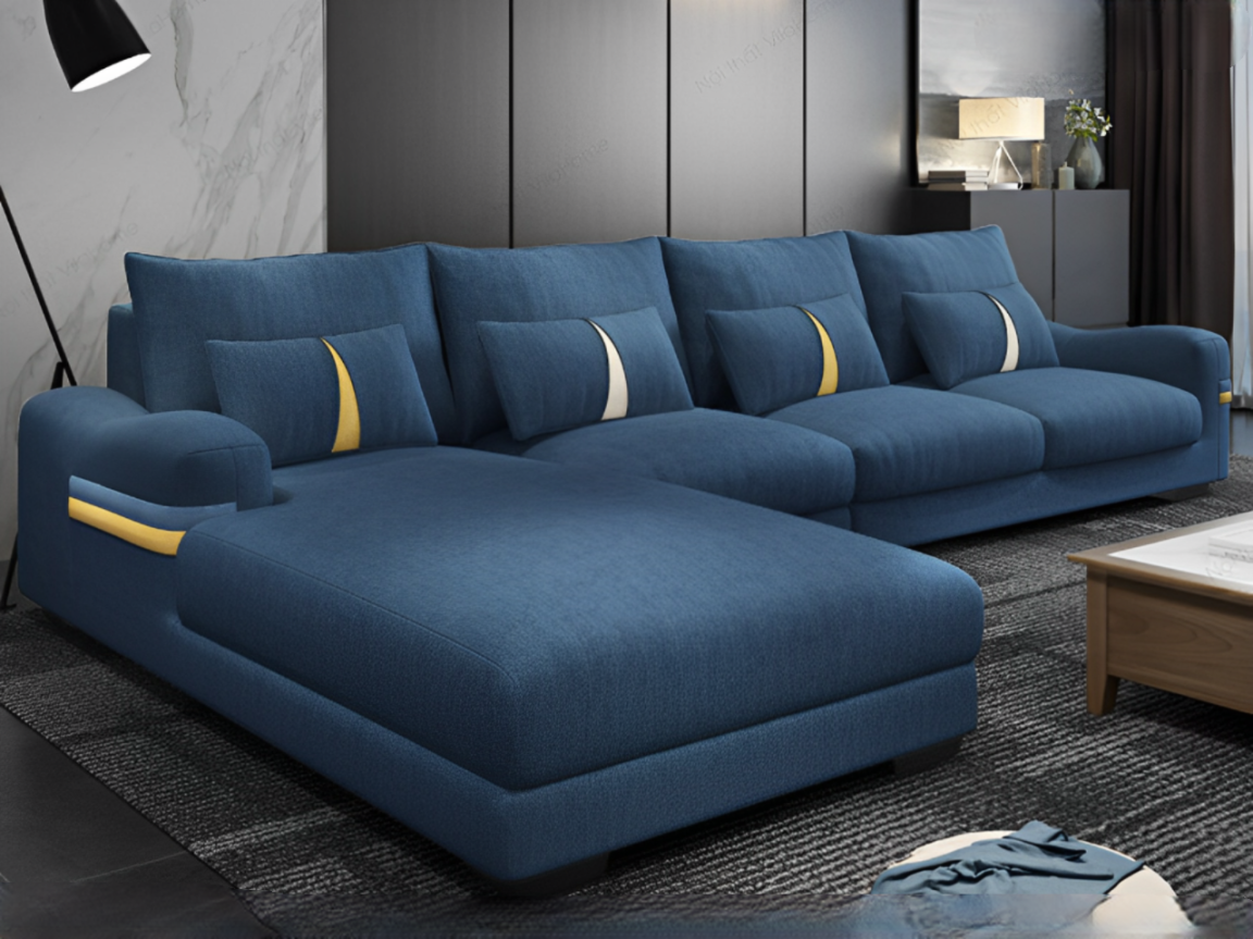 Mẫu sô pha giường góc màu xanh dương này sở hữu một diện mạo phá cách, tạo cảm hứng sống trẻ trung cho mọi gia đình. Tone màu này đang là hot trend của năm và chắc chắn sẽ là điểm nhấn giúp bừng sáng không gian nhà bạn.