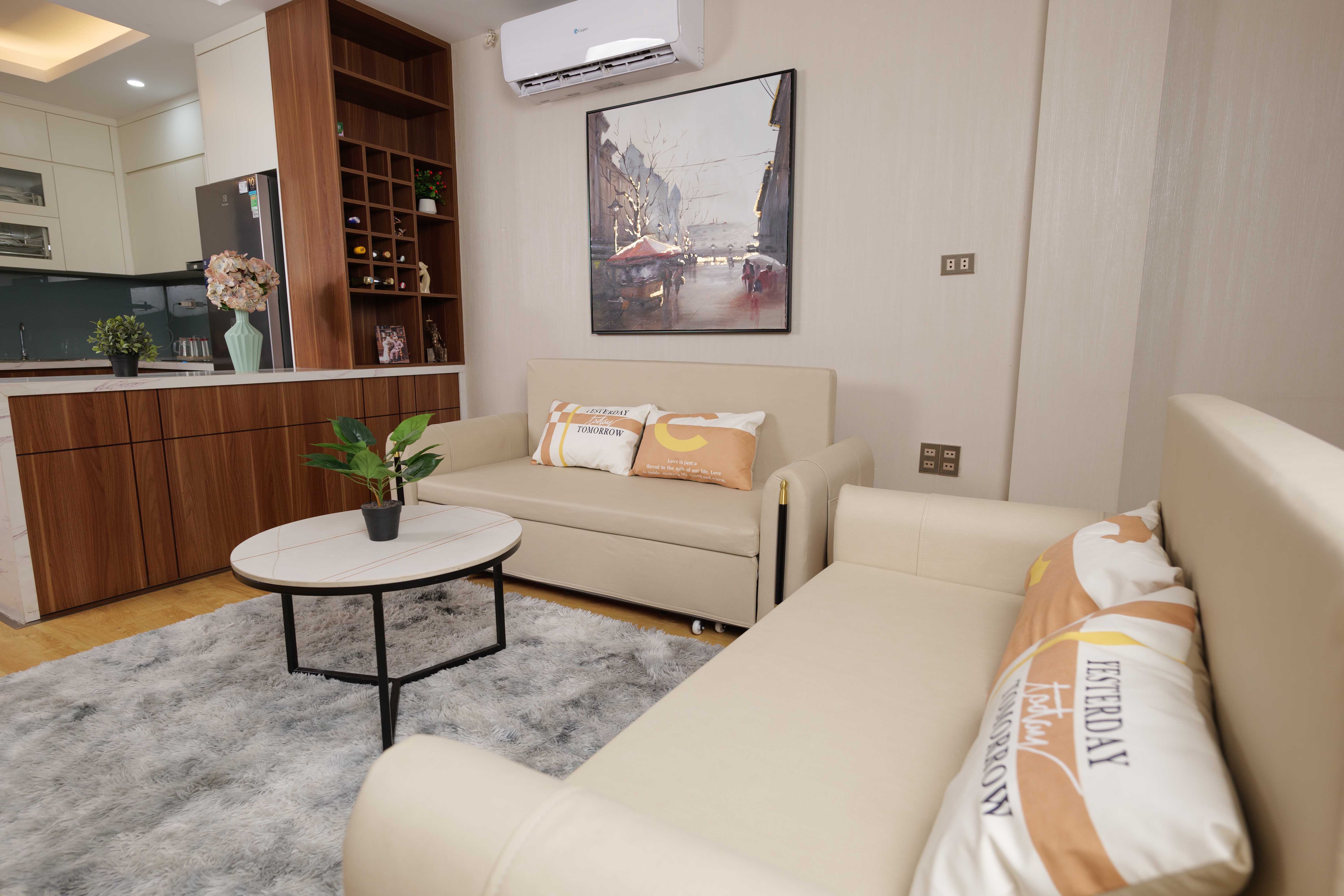 Thông thường, chung cư được thiết kế theo kiểu nhà mẫu, mang phong cách hiện đại, trẻ trung. Do đó, sofa giường nỉ sẽ là một sự lựa chọn cực hoàn hảo. Trong trường hợp, gia chủ thích sofa giường da thì có thể lựa chọn các mẫu da công nghiệp có màu sắc và kiểu dáng không quá cầu kỳ thì vẫn hợp.