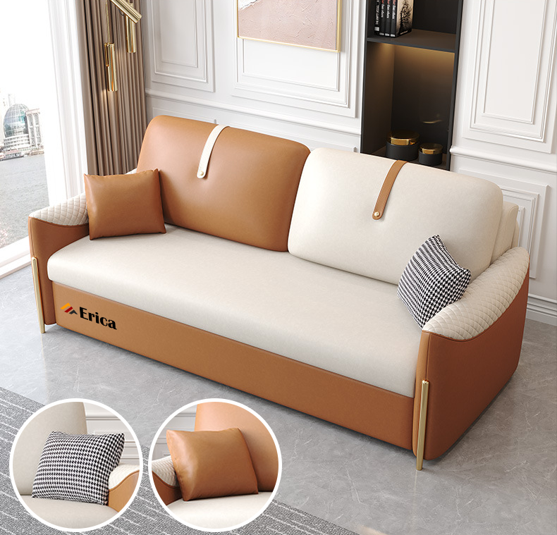 Đặt chiếc sô pha giường tone màu cam và trắng này trong không gian, sẽ tạo nên một không gian sống tươi mới, hài hòa, tinh tế, thư giãn tinh thần hiệu quả.