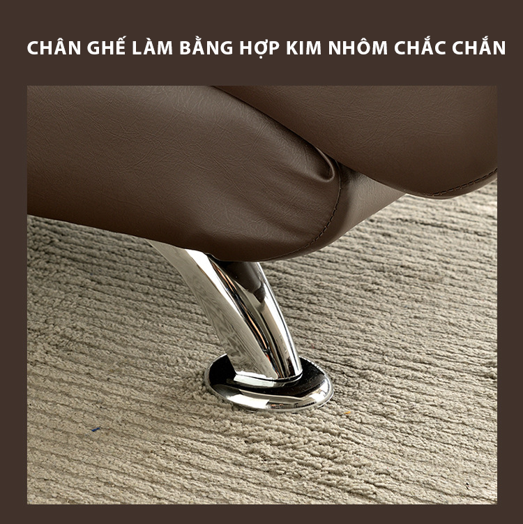 ERICA – GT6 được cấu tạo với chân ghế chắc chắn bằng hợp kim nhôm cao cấp, chịu lực tốt, chống gỉ tuyệt vời, bên dưới có lót thêm plastic PVC chống trầy xước giúp bảo vệ sàn nhà. Bên cạnh đó, khung xương gỗ bền bỉ, cứng cáp, có khả năng chịu tải cực đỉnh. Do đó, bạn có thể thoải mái nghỉ ngơi mà không sợ bị sập/gãy hỏng.