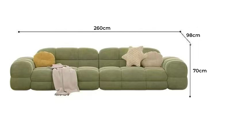 Bề mặt sofa được bọc bằng vải nhung bông cao cấp đã qua chọn lọc kỹ lưỡng. Loại vải này không chỉ có vẻ ngoài sang trọng mà còn bền chắc, chống xước, chống mài mòn và rất thân thiện với làn da. Ngoài ra, vải còn có độ thoáng khí tốt, giữ ấm vào mùa đông và mát mẻ vào mùa hè.
