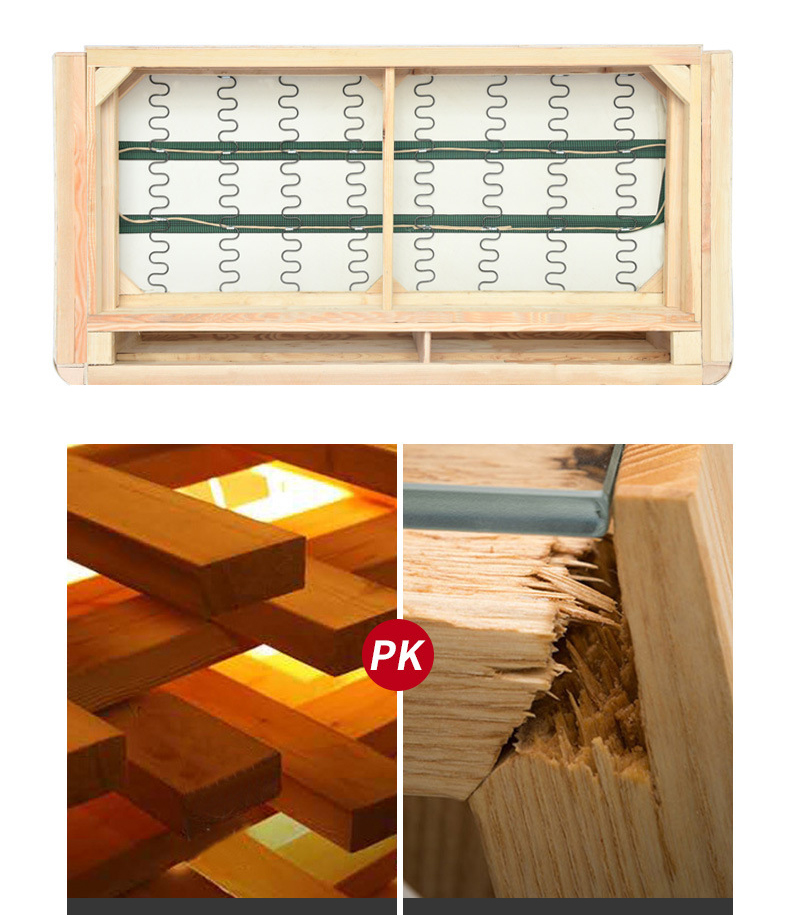 • Khung gỗ tự nhiên đã qua xử lý chống cong vênh và mối mọt, cho độ bền bỉ dài lâu.
