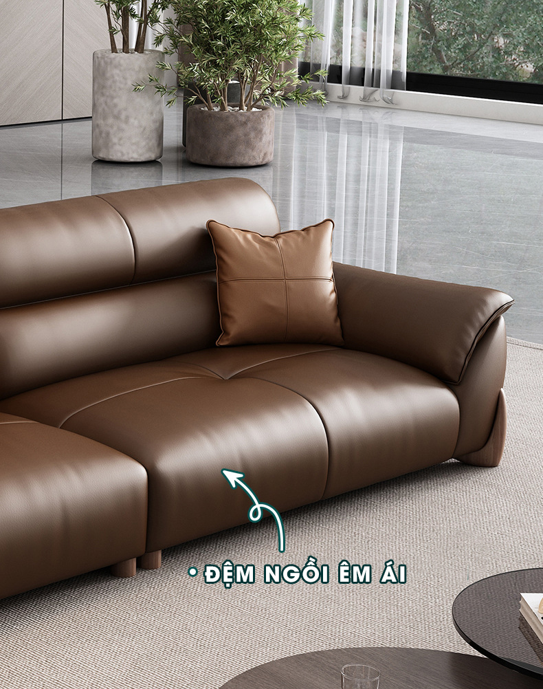 Sắc nâu caramel mang hơi thở ấm áp, vừa gần gũi vừa sang trọng. Đây là lựa chọn hoàn hảo cho những ai muốn thiết kế không gian sống tràn đầy cảm xúc mà vẫn giữ được sự thanh lịch và thời thượng. Màu sắc trung tính này giúp sofa dễ dàng hòa hợp với nhiều phong cách nội thất khác nhau.