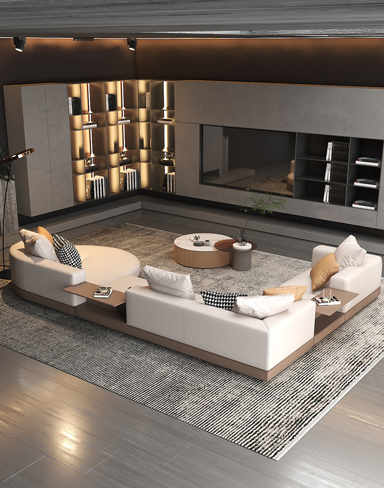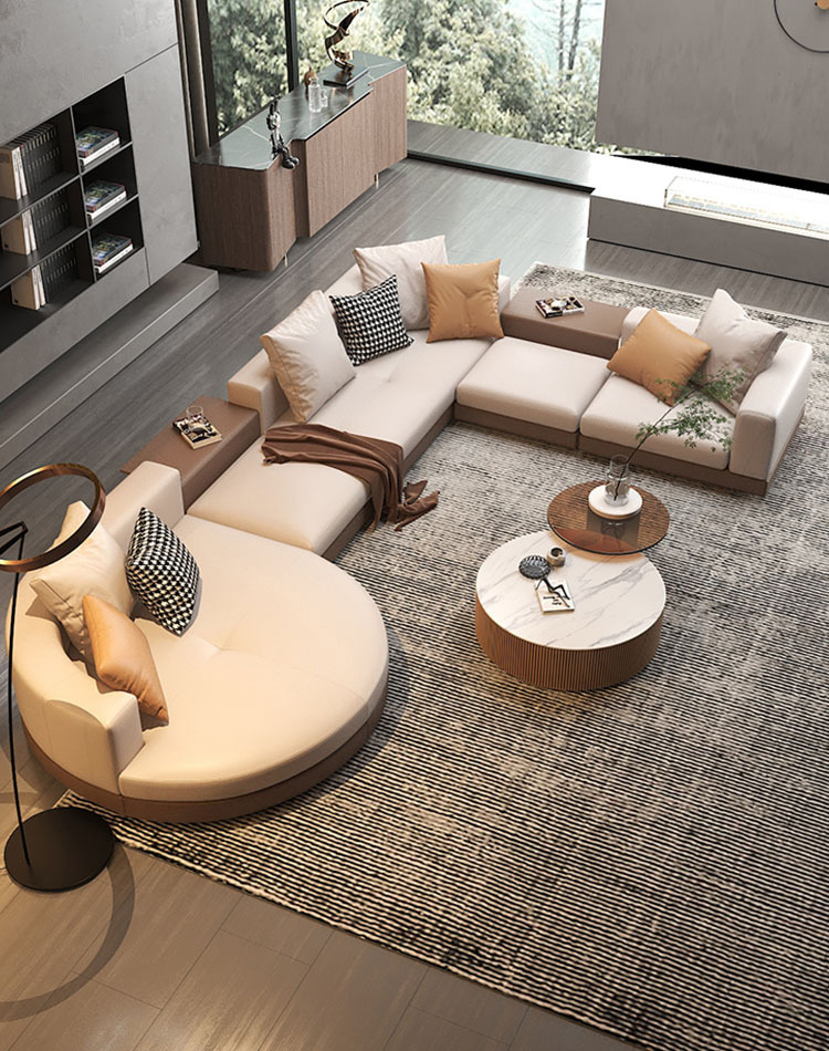 Được tạo nên từ 5 khối ghế liên kết với nhau, ERICA – NS35 tạo thành bố cục hình chữ U độc đáo. Mỗi khối ghế có kích thước riêng biệt về chiều dài nhưng lại đồng bộ về chiều sâu và độ cao, giúp tổng thể trở nên cân đối, bề thế. Với lợi thế này, sofa phù hợp nhất cho không gian phòng khách rộng lớn như biệt thự, liền kề hay căn hộ penthouse, mang đến sự hoành tráng và tiện nghi.