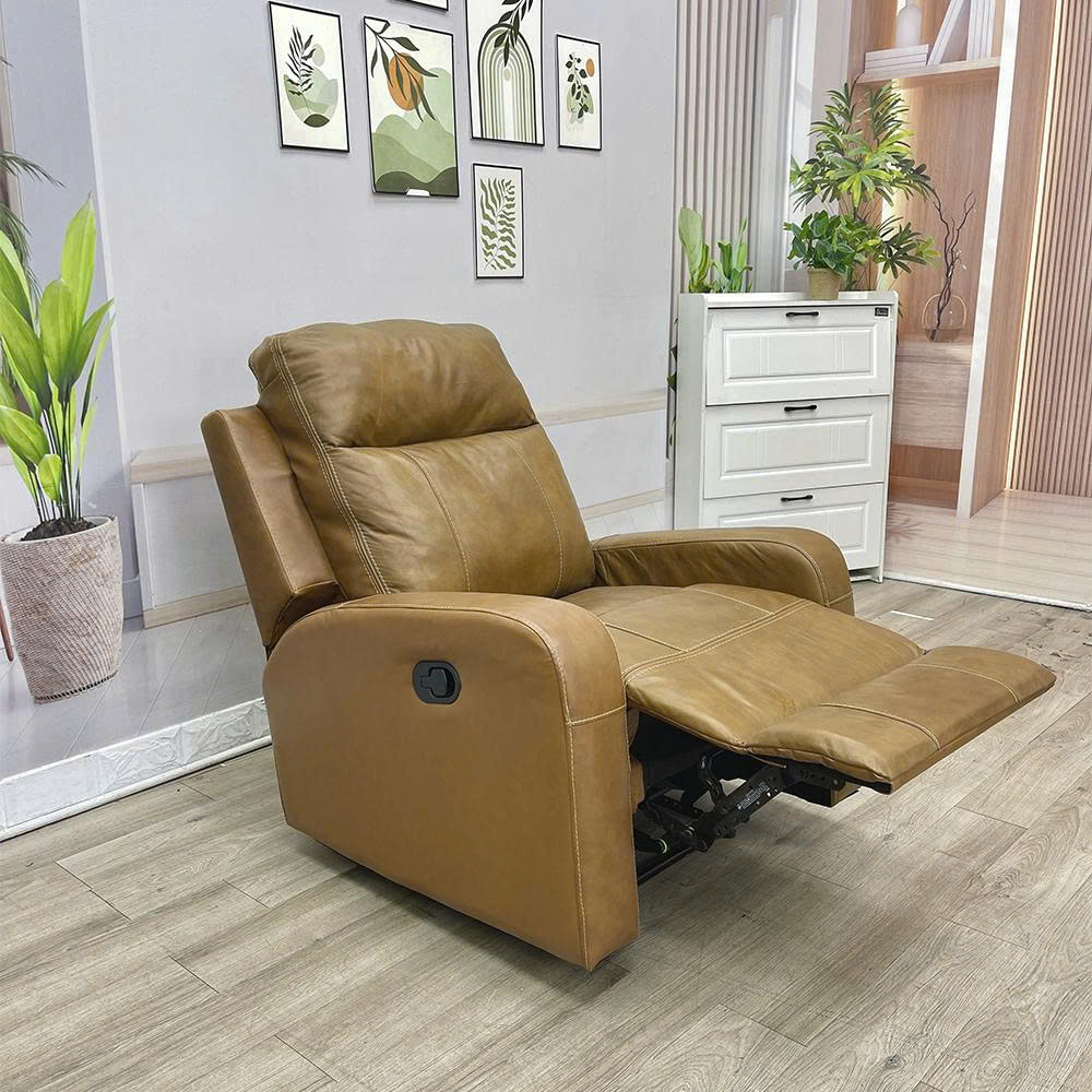Chiếc ghế thư giãn này sở hữu kiểu dáng hiện đại với những đường cong mềm mại ở tay vịn và tựa lưng, mang đến cảm giác vừa vặn và êm ái khi sử dụng. Màu nâu da bò cổ điển tạo nên sự hài hòa, dễ dàng phối hợp với nhiều phong cách nội thất từ hiện đại, tối giản, Bắc Âu đến cổ điển pha lẫn hiện đại.